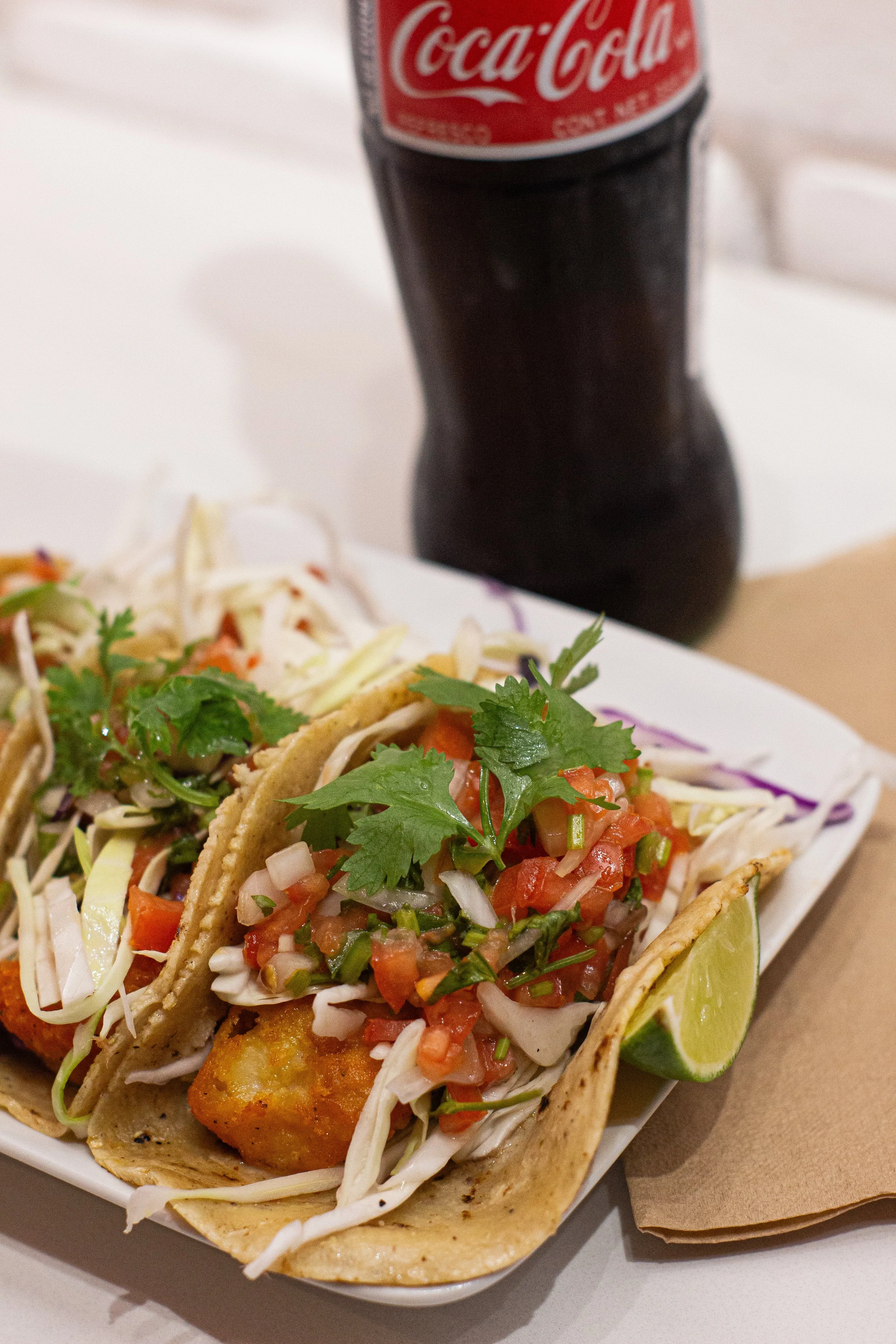 Crispy fried white fish with fresh pico de gallo and cabbage
